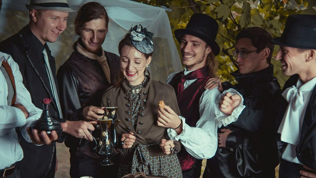 <span class='red'>Квестория</span>&nbsp;&mdash; это сюжетно-ролевая игра. Ведущий назначает роли и&nbsp;цели. Чтобы их&nbsp;достичь, взаимодействуете друг с&nbsp;другом&nbsp;&mdash; договариваетесь, флиртуете, плетёте интриги. Можно проводить в&nbsp;любом удобном месте, на&nbsp;любой праздник&nbsp;&mdash; корпоратив, день рождения, вечеринку с&nbsp;друзьями.