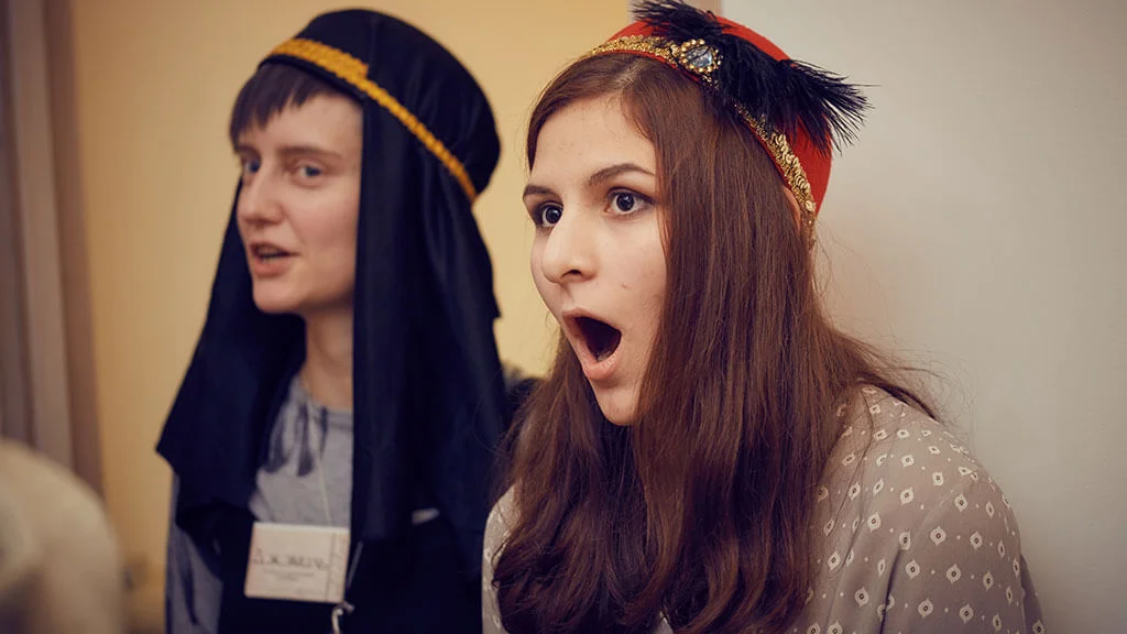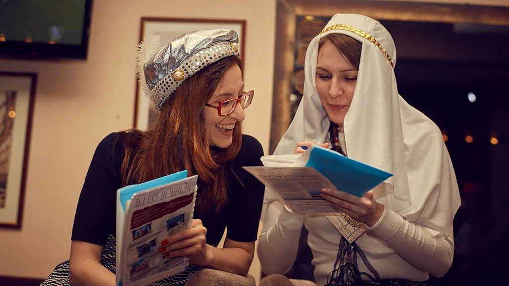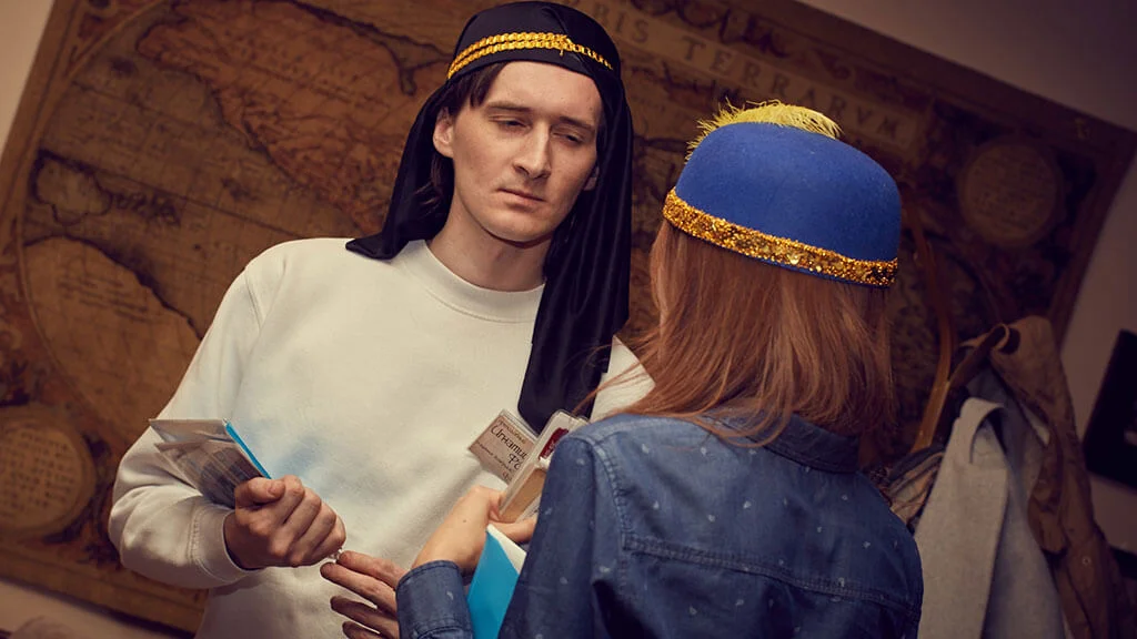 <span class='red'>Квестория</span>&nbsp;&mdash; это сюжетно-ролевая игра. Ведущий назначает роли и&nbsp;цели. Чтобы их&nbsp;достичь, взаимодействуете друг с&nbsp;другом&nbsp;&mdash; договариваетесь, флиртуете, плетёте интриги. Можно проводить в&nbsp;любом удобном месте, на&nbsp;любой праздник&nbsp;&mdash; корпоратив, день рождения, вечеринку с&nbsp;друзьями.